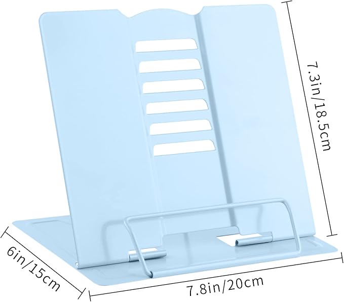 MSDADA Desk Book Stand Metal Reading Rest Book Holder Adjustable Document Holder Portable Sturdy Bookstands for Textbooks,Music Books,Recipe,Mobile Phone (Macaron Blue)