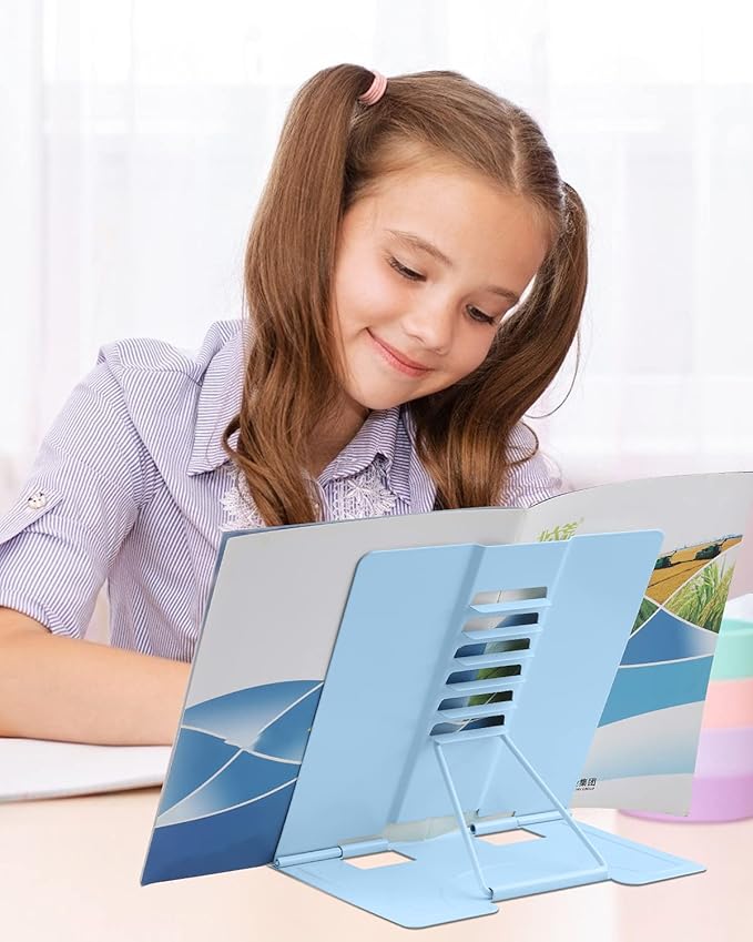 - Ergonomically designed: The adjustable metal bookstand to reduce head and neck strain; Children can effectively correct bad reading posture.