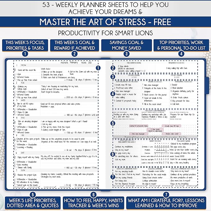 - SELF CARE PLANNER - This premium planner is undated and combines daily, weekly, and monthly planning features along with productivity, goal setting, business organization, to-do lists, notebook functionality, and gratitude journaling all in one. It includes goal-setting guidance that teaches you how to apply the law of attraction and vibration principles to become the best possible version of yourself on a mental, physical, and interpersonal level, thereby increasing productivity and happiness.