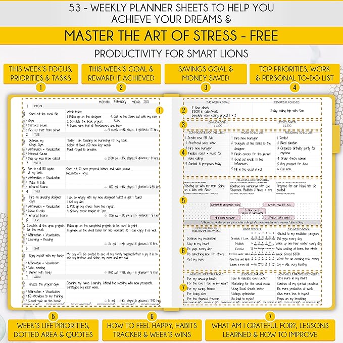 - SELF CARE PLANNER - This premium planner is undated and combines daily, weekly, and monthly planning features along with productivity, goal setting, business organization, to-do lists, notebook functionality, and gratitude journaling all in one. It includes goal-setting guidance that teaches you how to apply the law of attraction and vibration principles to become the best possible version of yourself on a mental, physical, and interpersonal level, thereby increasing productivity and happiness.