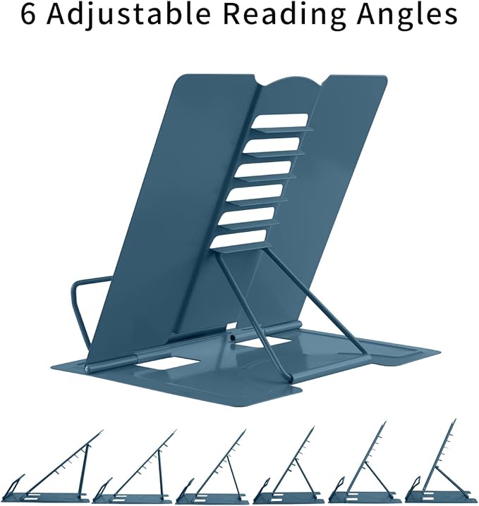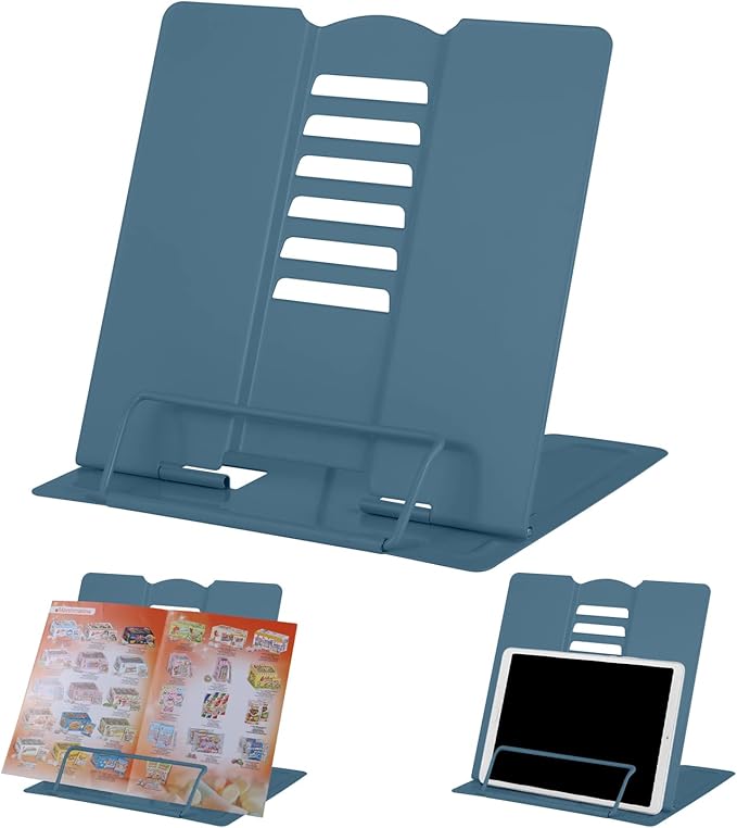 MSDADA Desk Book Stand Holder for Reading, Adjustable Cookbook Stand Metal Reading Stand for Textbooks Recipes Music Books Tablet (Morandi Navy)