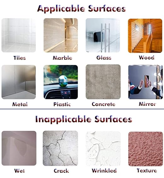 - WARM REMINDER: It is safe for glass, metal, marble, tiles, wood, plastic, and other smooth surfaces. NOT for rough and painted surfaces or the adhesive will DAMAGE THE PAINT. It is washable if the adhesive is dirty. Never use wipes or detergent, just flush with clean water and leave the tape dry naturally.