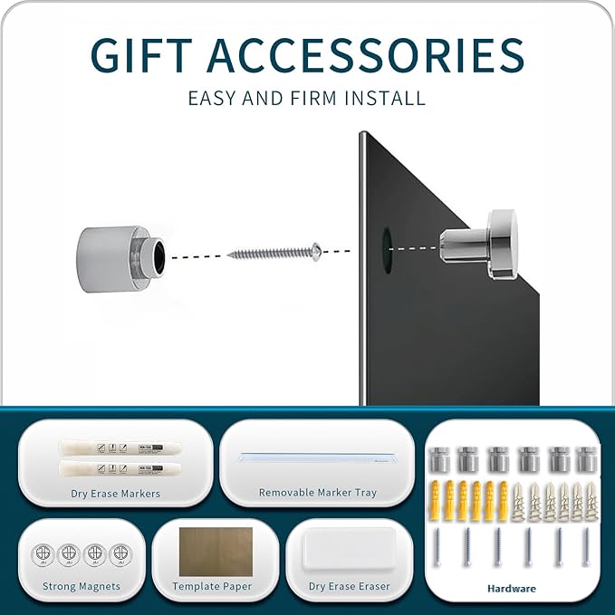 - 【EASY MOUNTING】: Pass-through mounting makes installation simple. With our wall-mounting kits and assemble instructions, you can hang the glass whiteboard on the wall easily. It can be wall-mounted horizontally and vertically. There are two kinds of anchors in the accessories for different wall