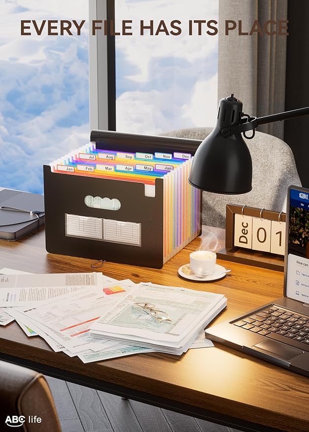 ABC life 12 Pockets Accordion File Organizer, Expanding File Folders, Portable Monthly Bill Receipt Organizer with Colorful A-Z Tabs, Desktop Folders Letter A4 Paper Document Storage for Home Office