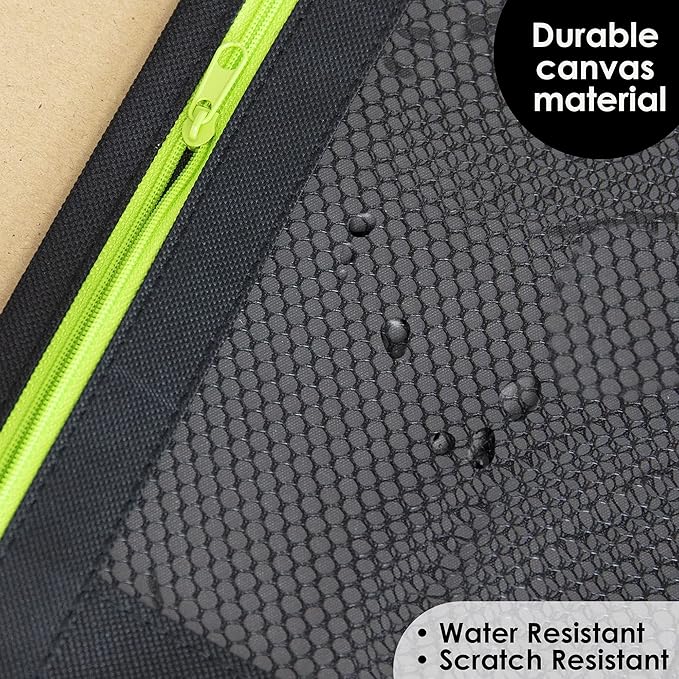 - ⭐ PORTABLE. Size measure: 9.8" x 7". Made of durable 600D polyester - scratch resistant. Feature reinforced 3 rings hole on bags to attached to binders. Black with neon color strip. Suitable for age 8 year old and over.