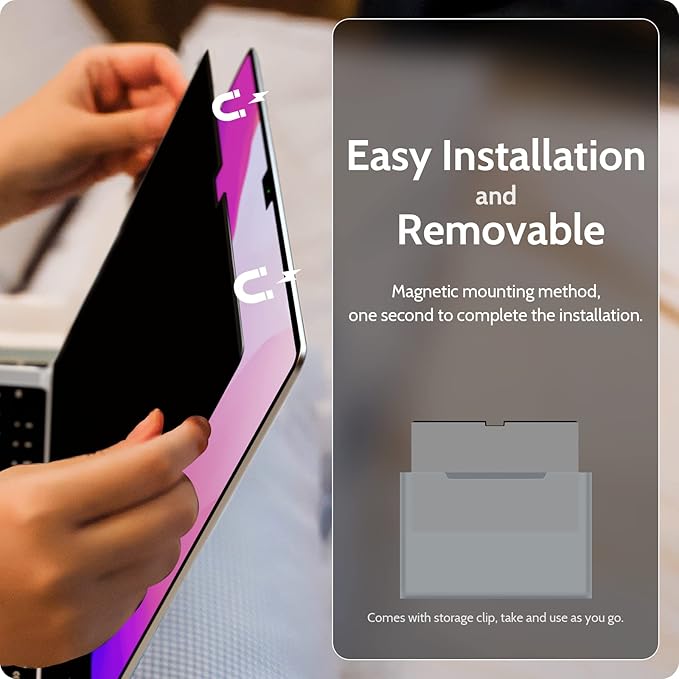 - 【WIDELY APPLICABLE】Removable design and comes with a macbook pro privacy filter protector storage clip that can be taken and used as needed, perfect for various occasions where screen privacy needs to be protected.Like offices, airports, cafes, trains, etc. Compatible with MacBook Pro 16 in (2021-2025, M4 Pro/M4 Max/M3 Pro//M3 Max/M2 Pro/M2 Max/M1 Pro/M1 Max Chip) - Model A3186 A3403 A2485 A2780 A2991