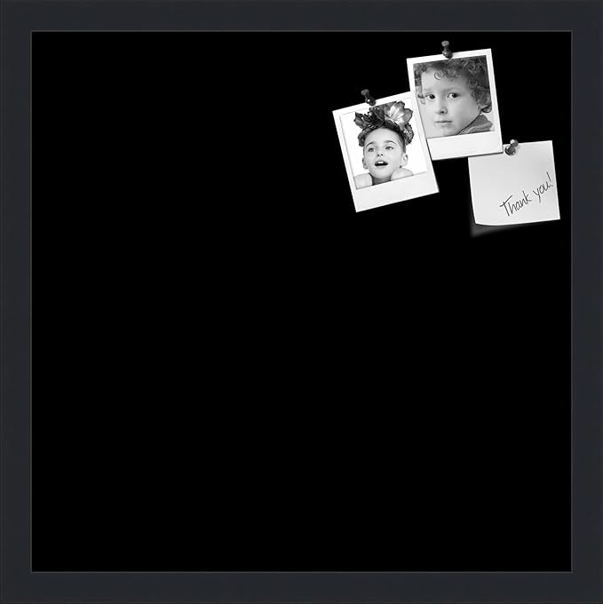 PinPix 17x17 Inch Cork Bulletin Board. This Decorative Framed Pin Board Comes with Solid Black Design and a Satin Black Frame. Ideal for Home Office Decor or Message Board (PinPix-622)