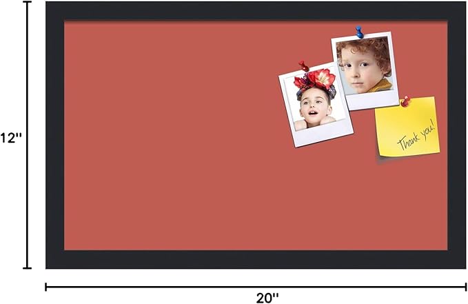PinPix 20x12 Inch Cork Bulletin Board. This Decorative Framed Pin Board Comes with Crimson Pastel Design and a Satin Black Frame. Ideal for Home Office Decor or Message Board (PinPix-1807)