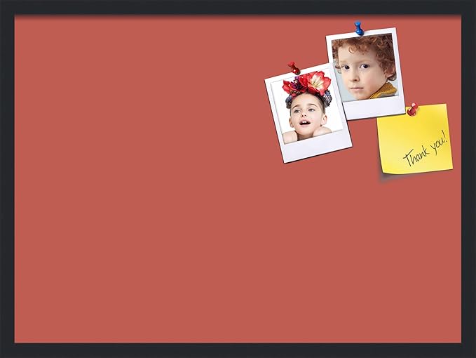 PinPix 30x22 Inch Cork Bulletin Board. This Decorative Framed Pin Board Comes with Crimson Pastel Design and a Satin Black Frame. Ideal for Home Office Decor or Message Board (PinPix-1807)