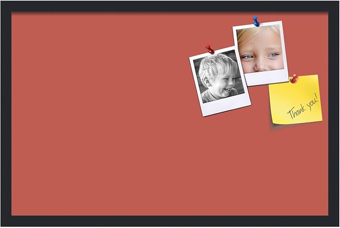 PinPix 28x18 Inch Cork Bulletin Board. This Decorative Framed Pin Board Comes with Crimson Pastel Design and a Satin Black Frame. Ideal for Home Office Decor or Message Board (PinPix-1807)