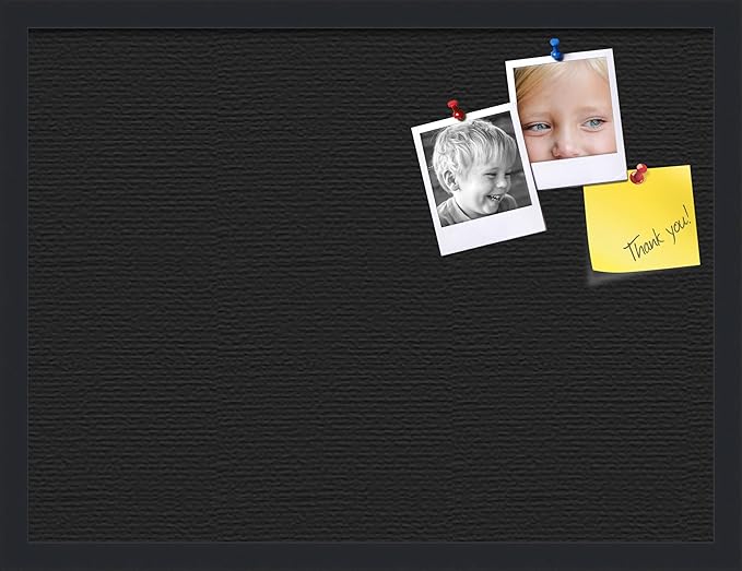 PinPix 24x18 Inch Cork Bulletin Board. This Decorative Framed Pin Board Comes with Solid Black Design and a Satin Black Frame. Ideal for Home Office Decor or Message Board (PinPix-622)