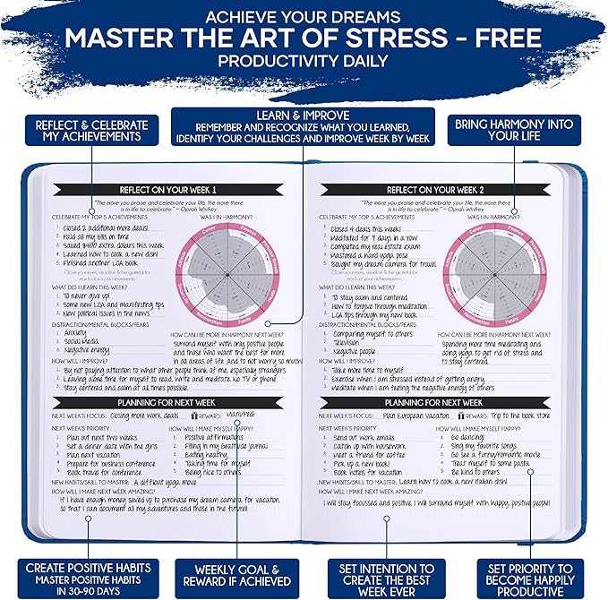 - LUXURIOUS AND TOP QUALITY - Self-care journal for women and men, perfect for entrepreneurs, professionals, college students and everyone who has burning desire to turn dreams into reality! FREE VIDEO MINI-COURSE: You will learn 10-min morning routine used by the most successful people to 10-fold your productivity, focus, happiness & passion! You will master setting goals & fix procrastination!