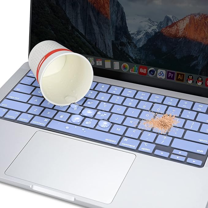 MOSISO Keyboard Cover Skin Compatible with MacBook Air 15 inch M3 A3114 M2 A2941/Air 13.6 A3113 A2681/Pro 14/16 M4 M3 M2 M1, Serenity Blue