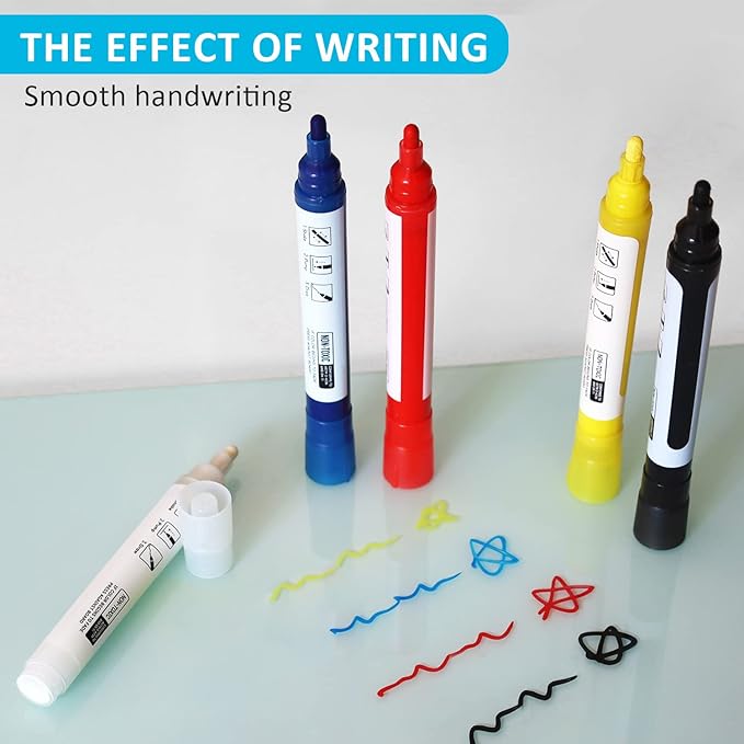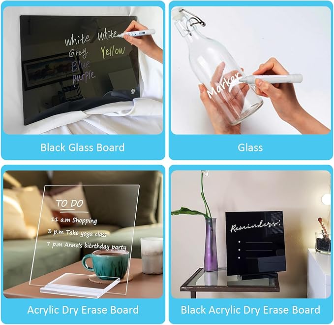 - 【BOLD COLOR】– Premium bright white glass dry-erase markers are optimized for use on non-porous surfaces, such as black glass boards/acrylic board. Delivers strong bold color every time, to ensure that your message is distinct and legible. Note: Doesn't include replacement marker tip.
