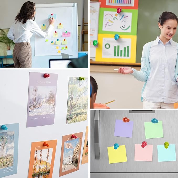 - 【Designed to Attach】Push pin shape design for magnetic-absorbing force, high strength glue. whiteboard magnets will not leave any dirt on your refrigerator, bulletin board, or maps, easily attach or remove.