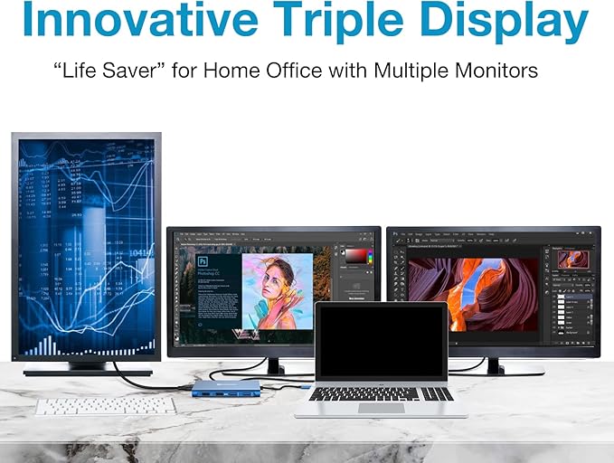 UtechSmart 11 in 1 Docking Station, Triple Monitors USBC Laptop Docking Station with 2 HDMI, VGA, PD3.0, SD TF Card Slot, 4 USB Ports USB-C Adapter Compatible for MacBook & Windows(Blue)