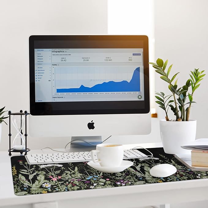 iCasso Large Mouse pad for Desk, Computer Desk Mat, 3Pcs XXL Keyboard and Mouse Pad + Keyboard Wrist Rest, Desk Matt for Desktop, Easy Typing Pain Relief Ultra Thick Mousepad Keyboard Mat(Weeds)