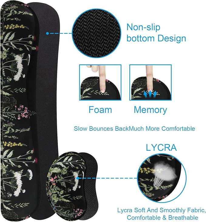 - Wrist Rest for Computer Keyboard and Mouse: With Comfortable Memory Foam & Breathable Material to the pads. The fabric of the surface is super soft. Slow bounces back and are not easy to out of shape provides comfortable and elastic support to the wrist