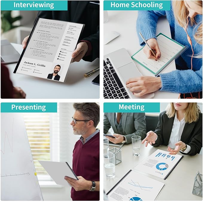 - 【12 Pack for Letter-Size】 This set includes 12 clear report covers and 12 black sliding bars, designed for standard letter-size paper (8.5 x 11 inches). The transparent front cover enhances the professional appearance, while the secure sliding bar keeps documents neatly in place. UL-certified for quality and reliability, these covers are designed for frequent use and provide dependable document protection.
