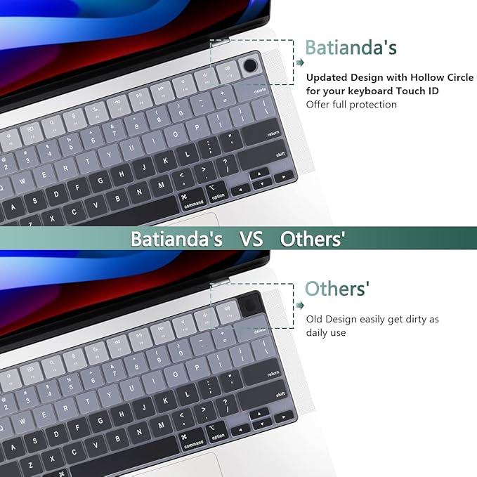 - Batianda 100% Brand keyboard cover skin perfect fit for New MacBook Pro 14'' and 16" with M4 M3 M2 M1 Pro / Max Chip 2024 2023 2021 release & New MacBook Air 13.6 inch and MacBook Air 15 inch 2023 2024 release