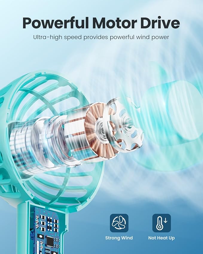 - Powerful wind & 3-speed setting: Built-in powerful brushless motors, which can generate strong wind; The hand fan has 3 adjustable wind speeds, press it for low-speed 3500r/m, medium speed 4500r/m, and high-speed 7500r/m