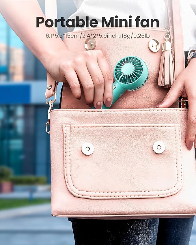 - Small size: This cute little fan is only 6.1*5.2*15 cm/2.4*2*5.9 inch, 118 g/0.26 lb, you can put it in your pocket or bag and hang it around your backpack