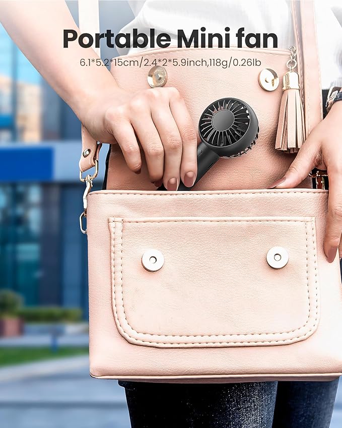 - Small size: This cute little fan is only 6.1*5.2*15 cm/2.4*2*5.9 inch, 118 g/0.26 lb, you can put it in your pocket or bag and hang it around your backpack