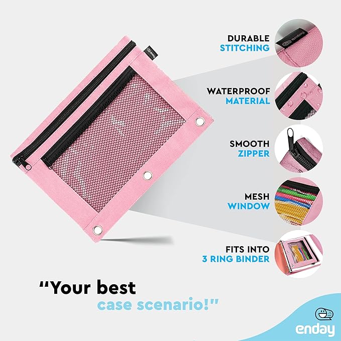 Enday Pink Pencil Pouch For 3 Ring Binder, Zippered Binder Pencil Pouches, 3 Ring Pencil Pouch for Binder, Pencil Case for Binder, Large Pencil Bags for School, Home, and Office