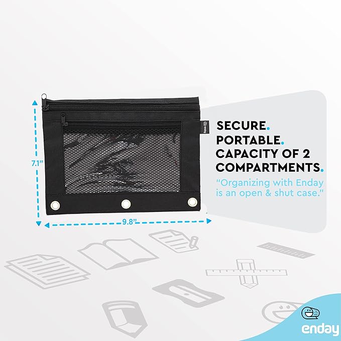 - ✓SPECS- This 3 ring binder pencil case is 9.5” x 7”. This zipper pouch for 3 ring binder is big enough to keep supplies neat and orderly yet small enough to fit nicely into any standard binder. This pencil pouch flat is perfect to store all your school supplies.