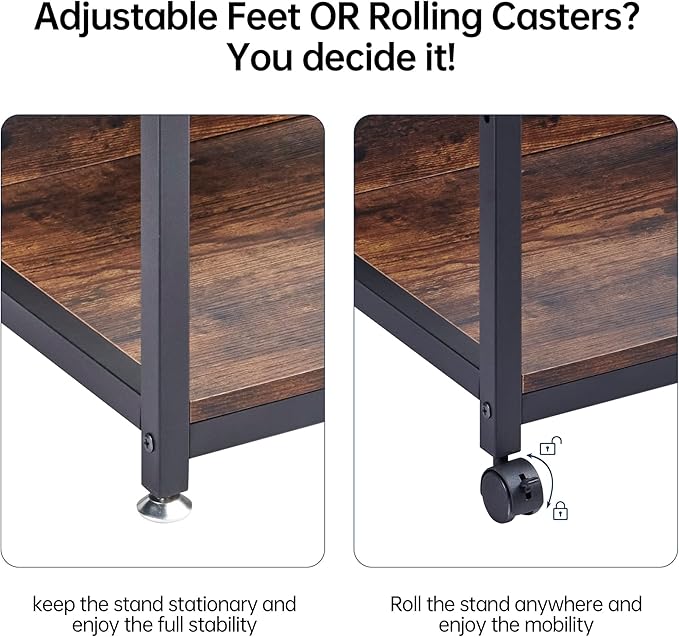 - 【Both the Feet and Casters Included】The package comes with both adjustable feet and rolling casters so that you can either keep the stand stationary with the feet and enjoy the full stability or mount the casters to move the stand around flexibly and enjoy the mobility. 2 of the 4 wheels are lockable to keep the cart in position.