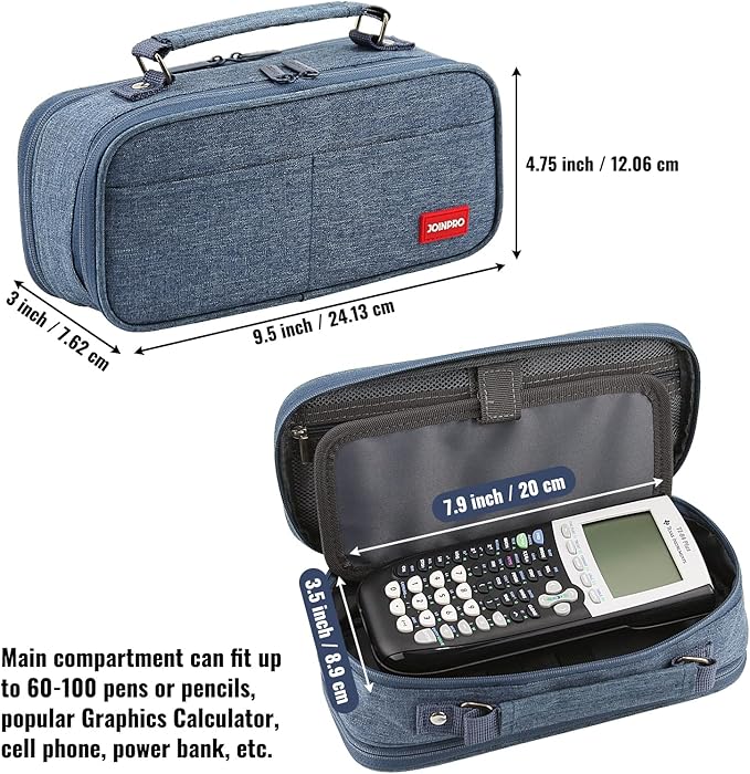 • Unique Designs - Fashionable colors and appearance, with three-dimensional and layered structure design. Two double-zipper, interior mesh pockets, and different compartments are designed for this pencil bag, it can hold pretty much everything a student needs. With rivet reinforcement handle strap design, not easy to break; and thickened handle strap for comfortable use and easy to carry.