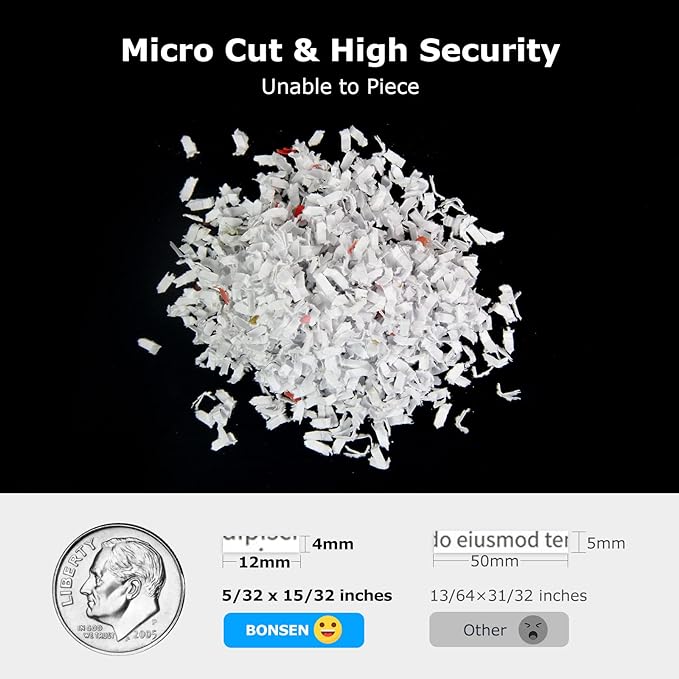 - Superior Security P-4 Level: Micro cut turns sheets of confidential document into 5/32" x 15/32" (4 x 12 mm) tiny pieces meets high security level P-4 standards for home office heavy duty use