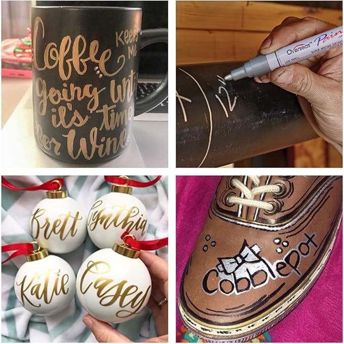 Overseas Gold and Silver Paint Pens - 6 Pack Oil Based Metallic Permanent Markers, Medium Tip, Quick Dry and Waterproof Paint Markers for Rock, Wood, Metal, Plastic, Canvas, Glass, Ceramics, Rubber