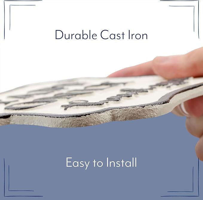 - LARGE SIZE: 6.5 x 6.5 x 0.25 inches: COLOR: Distressed white with black script & trim; MATERIAL: Cast iron