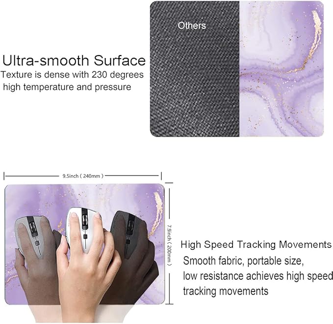 Mouse Pad, Purple Marble Design Mouse Pad, Washable Square Cloth Mousepad for Gaming Office Laptop, Non-Slip Rubber Base Computer Mouse Pads for Wireless Mouse, Cute Mouse Pads for Desk