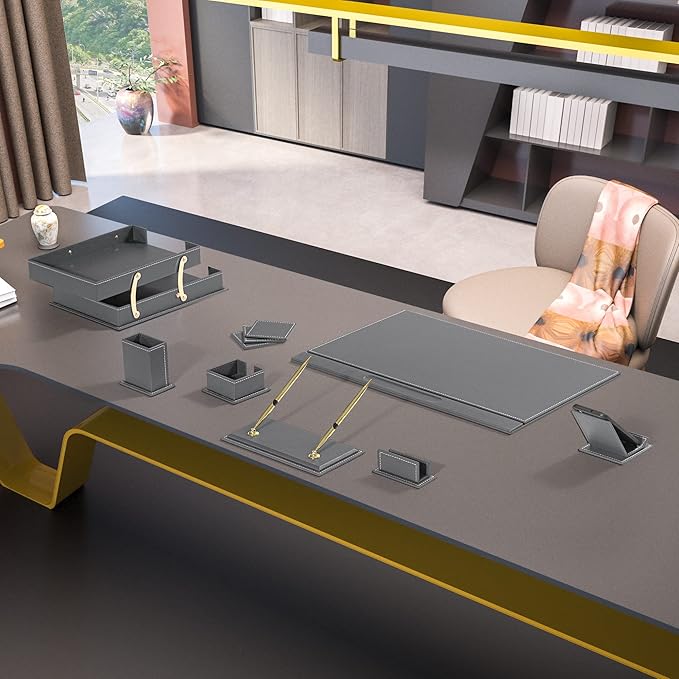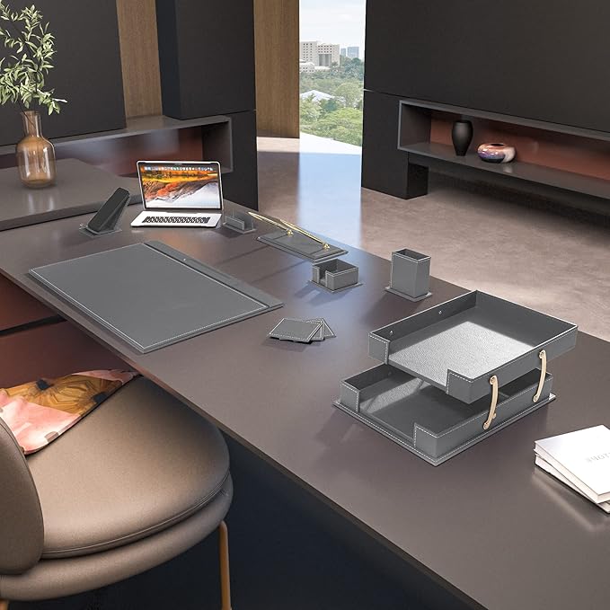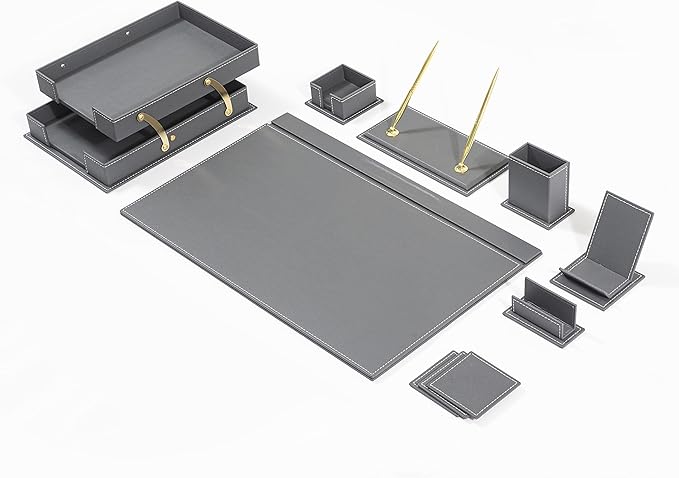 MOOGCO Bonded Set - Desk Accessories - Leather Desk Organizer - Bonded Leather Set - Office Desk Accessories - Home Office Accessories - Desk Supplies - Leather Desk Set - Office Accessories