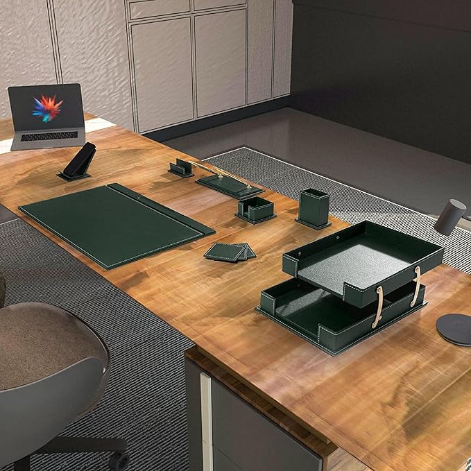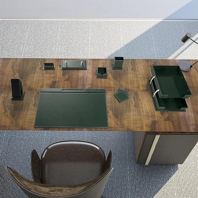 MOOGCO Bonded Set Luxury Leather Desk Pad & Desk Organization Essentials Desk Organizer Leather Desk Organizer (Green)