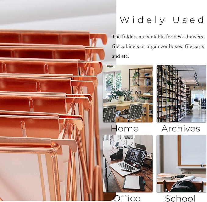 - Gold Foil Design - Unlike traditional file folder, our rose gold hanging file folder and tabs can match the gold desk organizer, and bring fashion and a modern atmosphere to your desk, create a more luxurious and elegant space