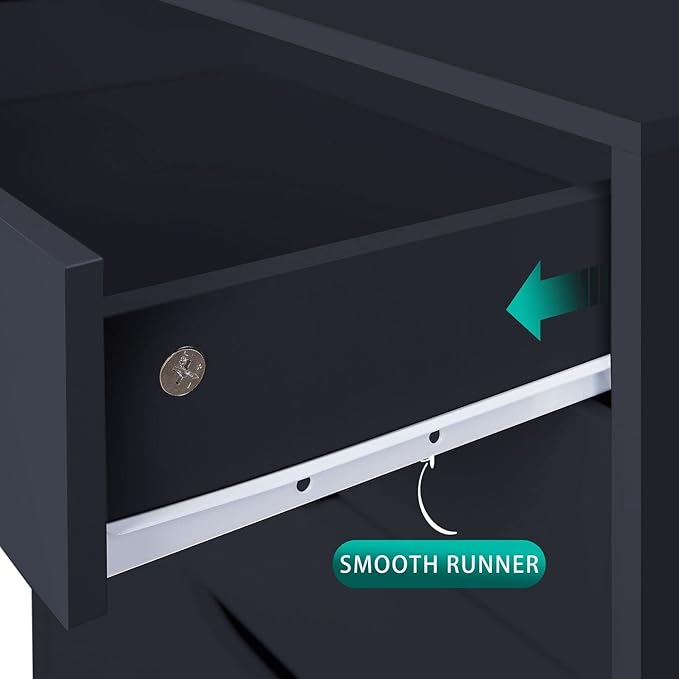 Naomi Home 7 Drawer Office File Cabinet, Storage File cabinets for Home Office, Office Organization Filing Cabinet with Wheels, Printer Stand with Storage, 180 lbs Capacity – Black