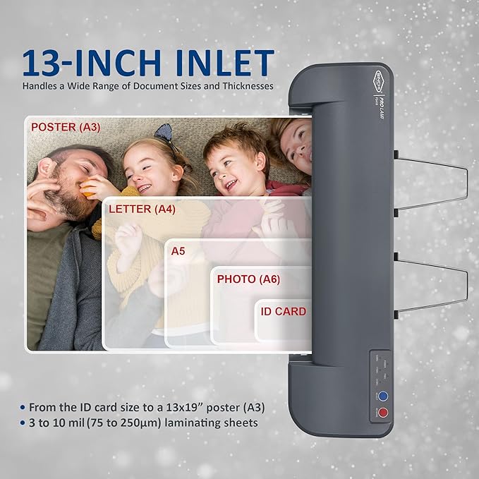 - 【Wide Compatibility】Supports all pouch sizes—from ID cards to 12"×18" posters—and works with 3–10 mil thickness per side. Ideal for laminating business documents, teaching materials, photos, and craft projects.