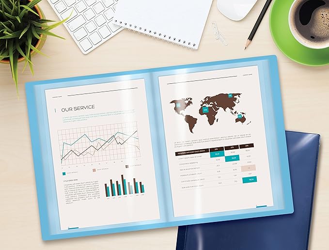 - HIGH-QUALITY MATERIALS: Front and back covers made of sturdy polypropylene and 12-pocket/24-pages made of clear non-glare polypropylene to provide long-lasting, spill-proof, stain-resistant durability paper report covers can't provide.