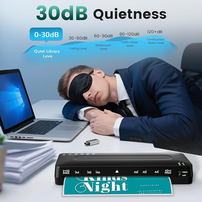 - Quiet Operation and Intelligent Safety: Equipped with an advanced temperature control system, this laminator machine with laminating sheets operates at less than 55db, providing a quiet working environment. Ideal for teachers and anyone in need of a personal laminator, it offers a safe, efficient lamination process, extending the lifespan of the machine while maintaining high-quality results