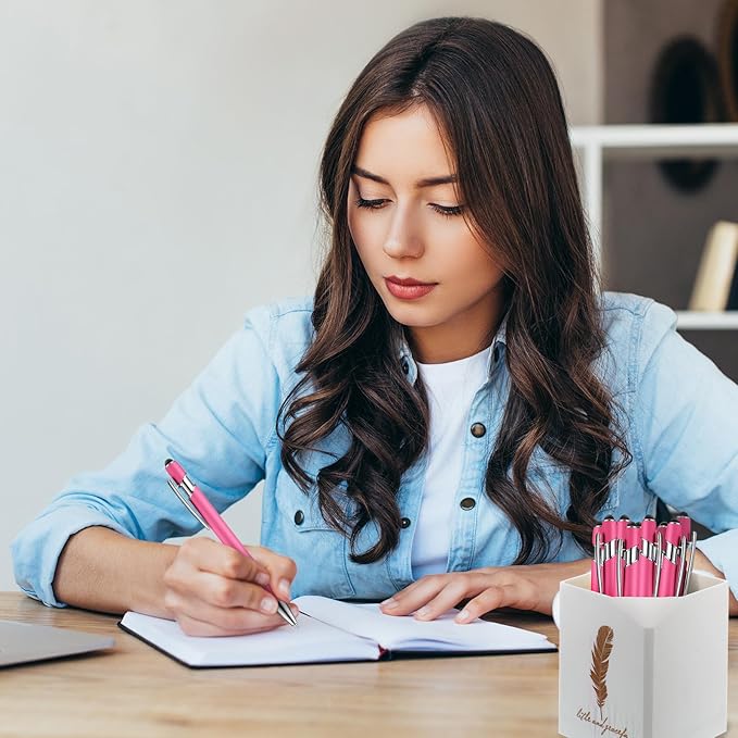 Zonon 38 Pieces Rubberized Ballpoint Pen with Stylus Tip Stylish Metal Pen Capacitive Styli with Soft Rubberized Grip, Black Ink for Most Devices(Hot Pink)