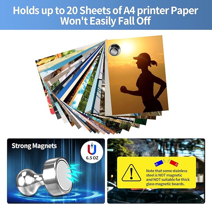 - đ»ăStrong Fridge MagnetăDo not be fooled by these white board magnets, They can hold up to 15 sheets of A4 printer paper at once with just a tiny magnet. Even possible to use them in the kitchen to hold cooking tools that weigh no more than 6.5 OZ and the cooking tools won't easily fall off.
