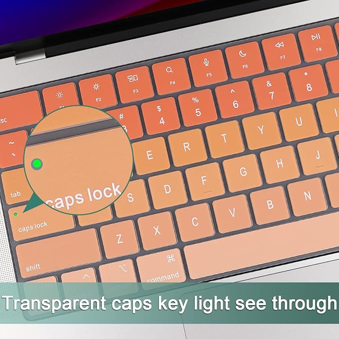 Batianda Premium Gradient Color Keyboard Cover for New MacBook Pro 14'' Pro 16'' 2024 2023 M4 M3 M2 M1 Pro/Max Chip & New MacBook Air 13 15 inch Soft-Touch Silicone Protective Skin, Orange