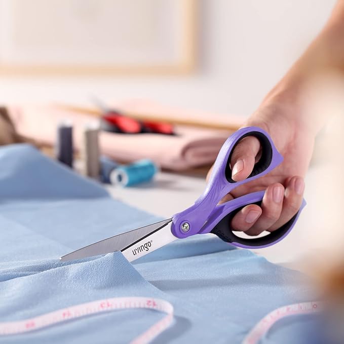 LIVINGO 3 Pack Sharp Scissors, 8.5 inch Comfort Grip Scissors All Purpose for Office, Stainless Steel Shears for Home Heavy Duty Cutting Fabric Sewing, Paper, School Crafting DIY