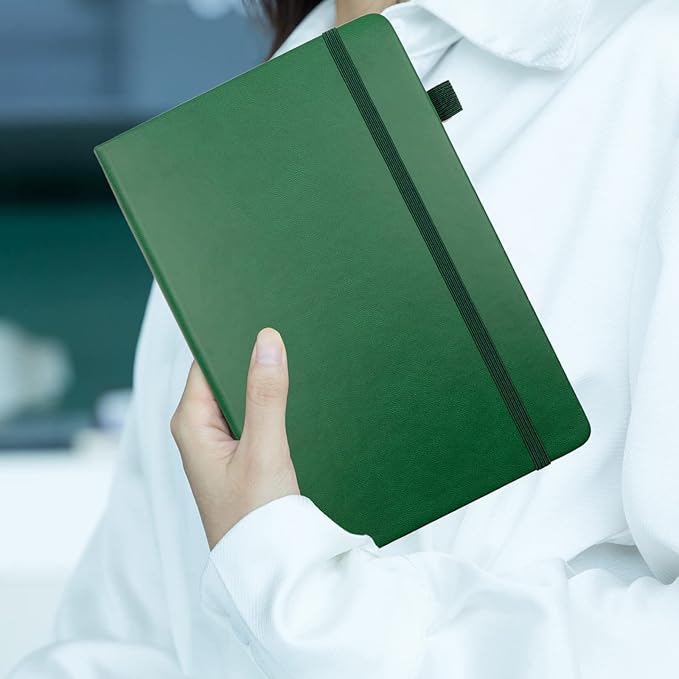 Deziliao Lined Journal Notebooks with Pen Loop, Hardcover Notebook Journal for Work, 100Gsm Premium Thick Paper with Inner Pocket, Medium 5.7"x8.4", (Dark-Green, Ruled)