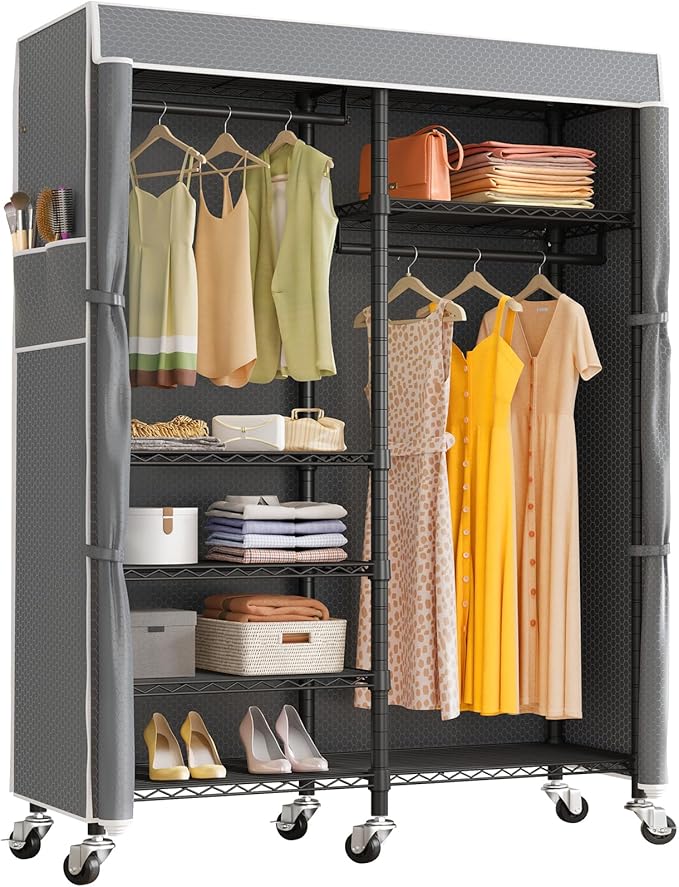 - ZIPPERED POLYESTER FABRIC COVER: Closet comes with upgraded polyester fabric cover, sturdy, wrinkle resistance, breathability keep garments dry. Easy to clean with damp cloth, and to keep your item away from dust.