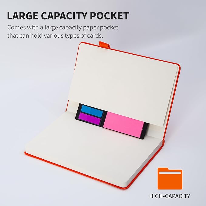 - 🌈【Multifunctional Accessories】⭐This classic 5.6" x 8" vegan leather journal features a durable and water-resistant cover, 160 college ruled lined pages, inner expandable pocket, pen holder, ribbon bookmark & elastic closure band
