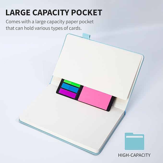- 🌈【Multifunctional Accessories】⭐This classic 5.6" x 8" vegan leather journal features a durable and water-resistant cover, 160 college ruled lined pages, inner expandable pocket, pen holder, ribbon bookmark & elastic closure band